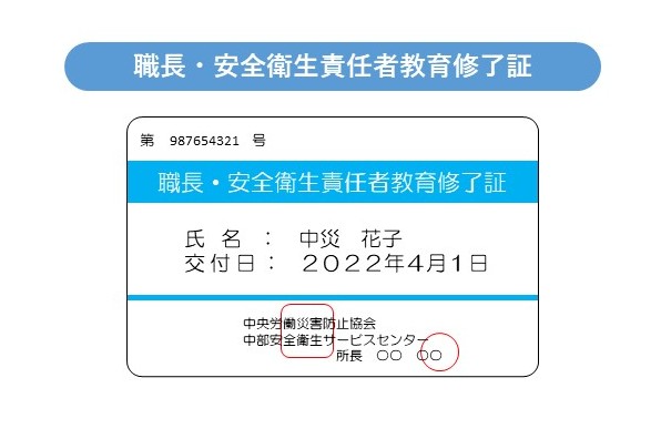 ※当研修会には職長等教育に加え、安全衛生責任者教育も含まれています。 また、当研修会は「職長等安全衛生教育研修会」と併せて同日程で開催しているため、「職長等安全衛生教育研修会」にお申込みいただいた方とは2日目の終了時刻が異なります。