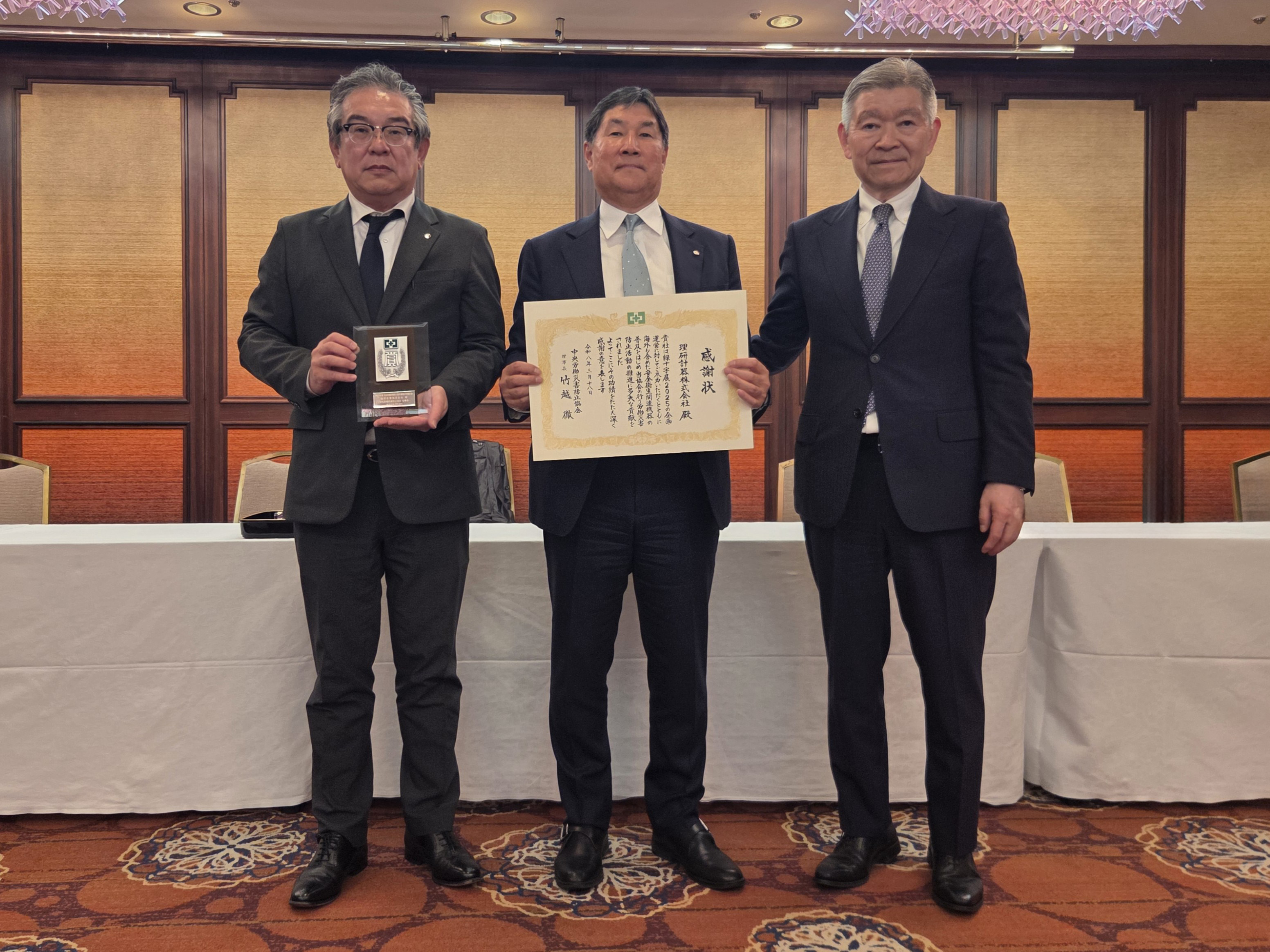 緑十字展2025の企画・運営に対してご尽力いただくとともに 海外も含めた安全衛生関連機器の普及をはじめ 当協会の行う労働災害防止活動の推進に多大な貢献をいただいた。